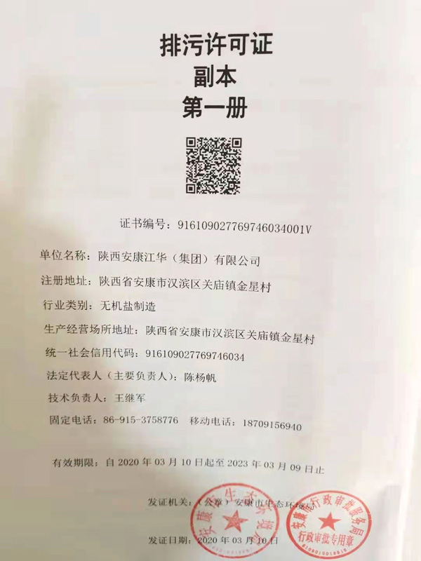 排污許可證:漢濱環(huán)保分局(證書編號PXXQ09022600006-1511) |